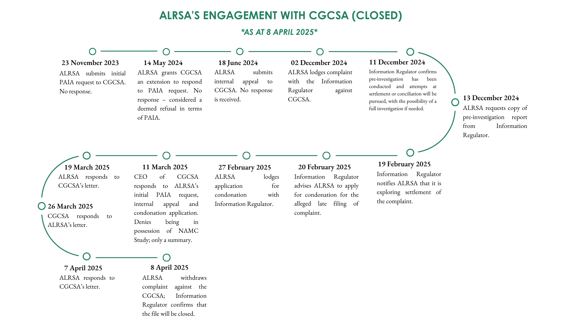 For transparency, we have made available our correspondence with SAPA, NAMC, the CGCSA and DoA (“Industry Bodies”). These documents have been redacted in line with the Protection of Personal Information Act (“POPIA“). Redactions made by ALRSA and those made by the Industry Bodies are not distinguished. By clicking on below, you will be directed to a separate Google Folder containing documents related to ALRSA’s engagement with these industry bodies.
